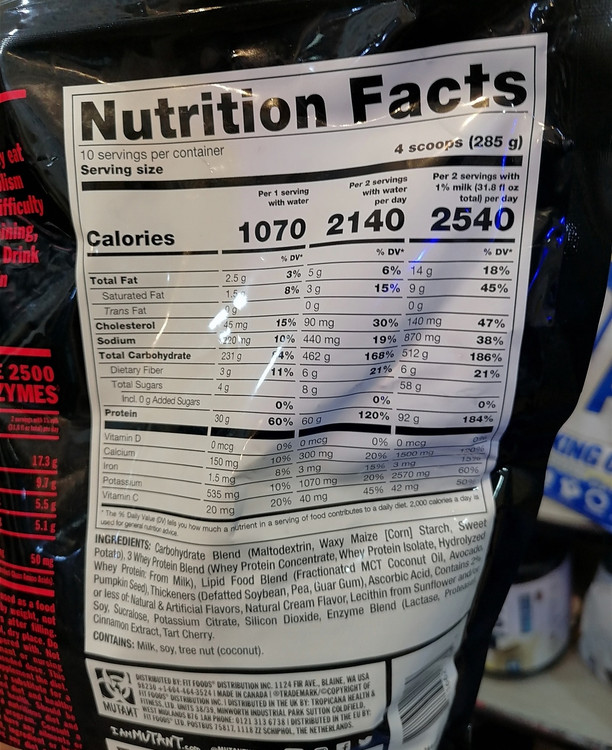 MUTANT MUTANT MASS XXXTREME 2500 INREDIENTS & NUTRITION Facts