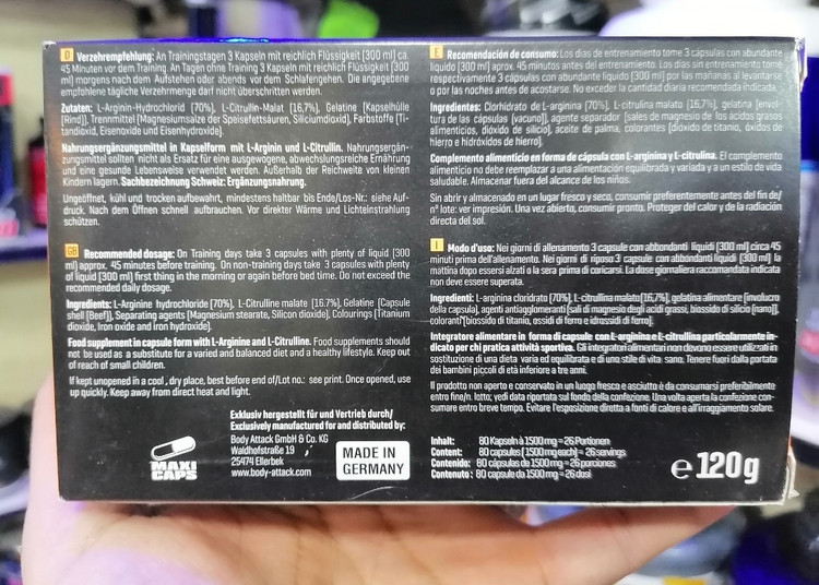 ترکیب دو اسید آمینه، آرژنین و سیترولین، کلید دستیابی به بهترین نتایج در طول تمرین است. این با تحریک تولید اکسید نیتریک اتفاق می افتد که منجر به افزایش اثر پمپ عضلانی می شود. آرژنین که اساس مکمل بادی اتک است، گشادکننده عروق است. جریان خون را افزایش می دهد که به بهبود کارایی سیستم گردش خون منجر می شود. همچنین با حمایت از سنتز پروتئین و ترمیم بافت، عملکرد ورزشی شما را بهبود می بخشد. سیترولین مالات به نوبه خود ظرفیت هوازی و غیرهوازی را در طول تمرینات استقامتی طولانی مدت افزایش می دهد، ظاهر خستگی را به تاخیر می اندازد و بازسازی فیبرهای عضلانی را تسریع می بخشد.