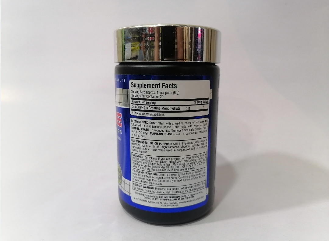 مشخصات محصول CREATINE MONOHYDRATE POWDER ALLMAX