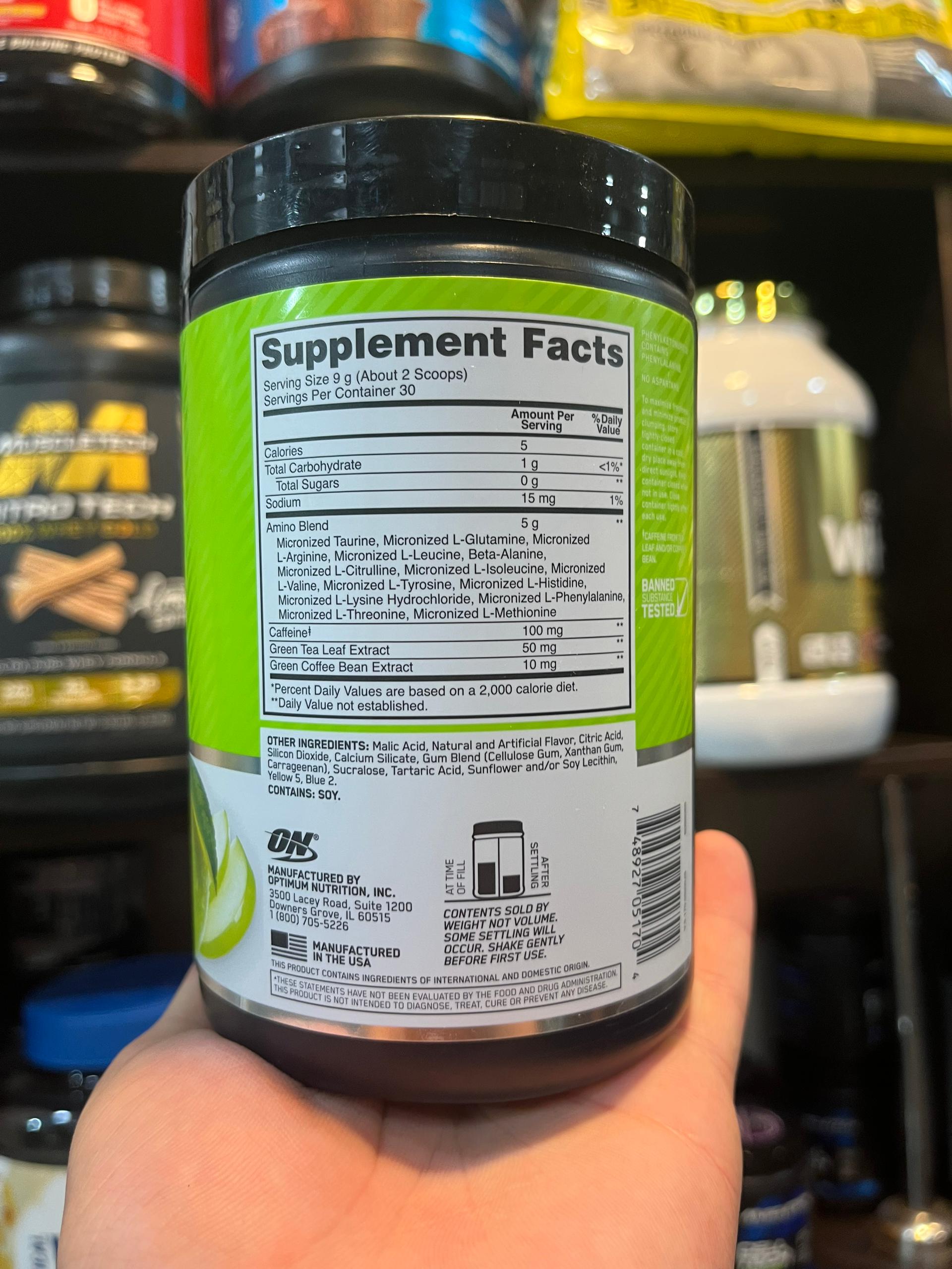 مکمل آمینو انرژی اپتیموم نوتریشن را مخلوط کنید و انرژی لازم را در هر زمان که می خواهید انرژی، تمرکز و ریکاوری عضلات را افزایش دهید به دست آورید. هر سروینگ 100 میلی گرم کافئین از منابع طبیعی برای پشتیبانی از انرژی و تمرکز همراه با 5 گرم آمینو اسید برای پشتیبانی از عضلات ارائه می کند.آمینو انرژی یک ترکیب انرژی با 100 میلی گرم کافئین حاصل از عصاره چای سبز و/یا قهوه سبز برای تامین انرژی بیشتر برای کمک به شما در گذراندن روز یا یک تمرین طاقت فرسا است.
