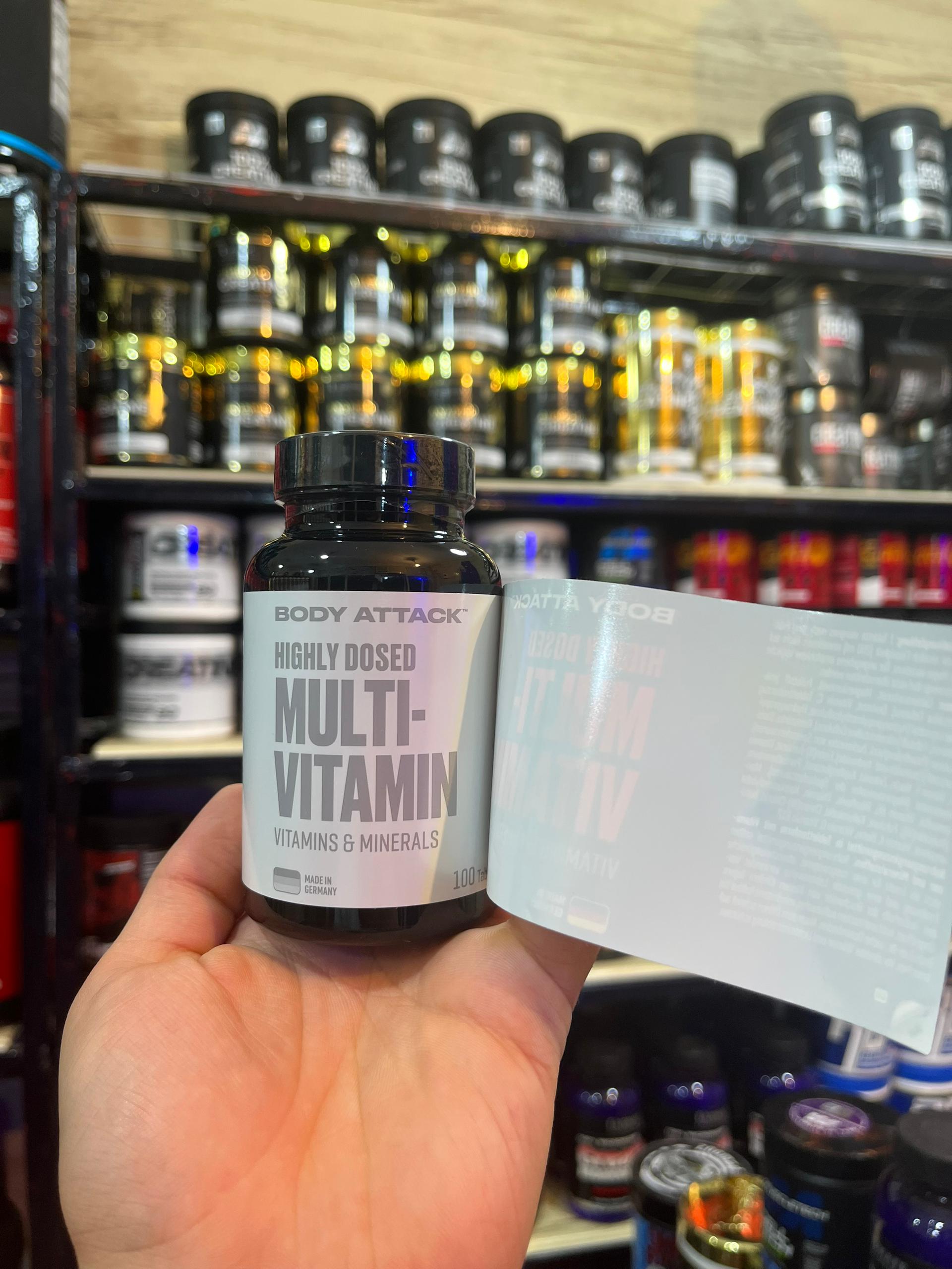 مولتی ویتامین با دوز بالا بادی اتک 100 عددیMulti vitamin Body attack یک مولتیویتامین با دوز بالا است که برای تامین نیازهای روزانه بدن به انواع ویتامینها و مواد معدنی طراحی شده است. این مکمل شامل مجموعهای از ویتامینها، مواد معدنی و عناصر کمیاب است که میتوانند به بهبود سلامت عمومی، افزایش انرژی، تقویت سیستم ایمنی و بهبود عملکرد ورزشی کمک کنند. برخی از ویژگیها و فواید این مکمل عبارتند از: