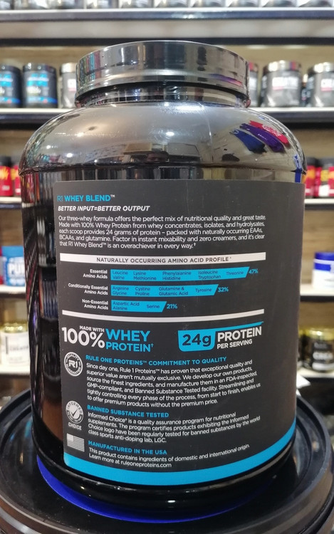 پروتئین وی رول وان، برای مصرف در شروع روز، قبل از تمرین یا بلافاصله بعد از تمرین، بین وعدههای غذایی یا به عنوان یک میان وعده مناسب است. این محصول برای اطمینان از کیفیت آن در مراکز ایالات متحدهی آمریکا، تولید میشود. پروتئین Rule One حاوی آمینواسیدهای ضروری است که برای ریکاوری و ترمیم عضلات مهم هستند. این محصول حاوی آمینو اسیدهای ضروری و پروتئین با کیفیت بالا، 24 گرم پروتئین وی صد در صد از کنستانتره وی ایزوله و هیدرولیزه با ای ای ایها و بی سی ای ایها و گلوتامین است.