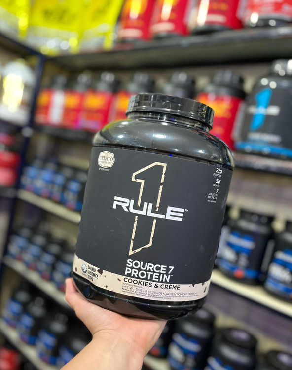وی پروتئین رول وان مدل Source 7 Protein (طعم Cookies & Crème) هست. این پروتئین از خانوادهی مکملهای برند آمریکایی Rule 1 بوده و فرقش با ویهای معمولی (ایزوله یا کنسانتره ساده) اینه که ترکیبی از ۷ منبع مختلف پروتئین رو داره. همین باعث میشه جذب پروتئین در بدن هم سریع، هم متوسط و هم آهسته اتفاق بیفته و مدت بیشتری بدن در حالت تأمین اسیدهای آمینه قرار بگیره.