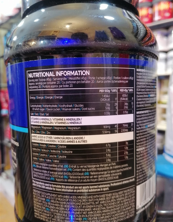 این مکمل حاوی 3 گرم کراتین و 5 گرم بی سی ای ای در هر وعده می باشد که می دانید کراتین باعث افزایش حجم عضلات شده و قدرت بدنی شما را افزایش می دهد و علاوه بر این ریکاوری عضلات شما را به سرعت انجام می دهد.